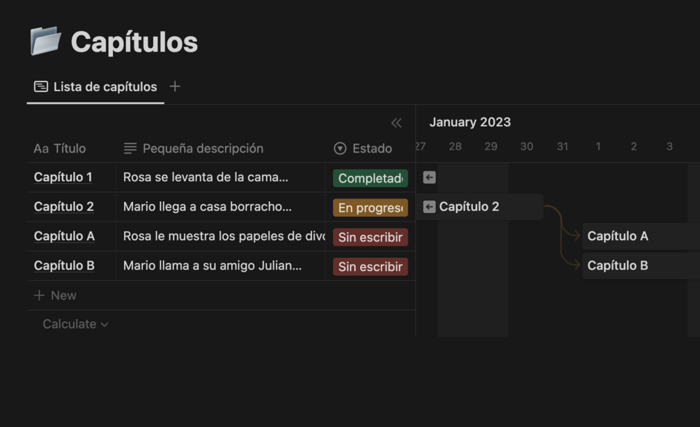 En la página 📂 Capítulos puedes ordenar tus capítulos para dar un mayor enfoque a tu novela: ¿y si empiezas con la muerte de la víctima?